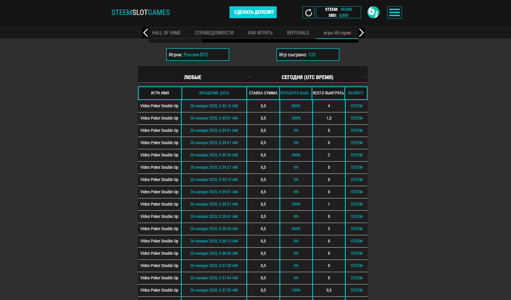 I deposited 25 steem and started playing with a bet of 0.3 steem!
