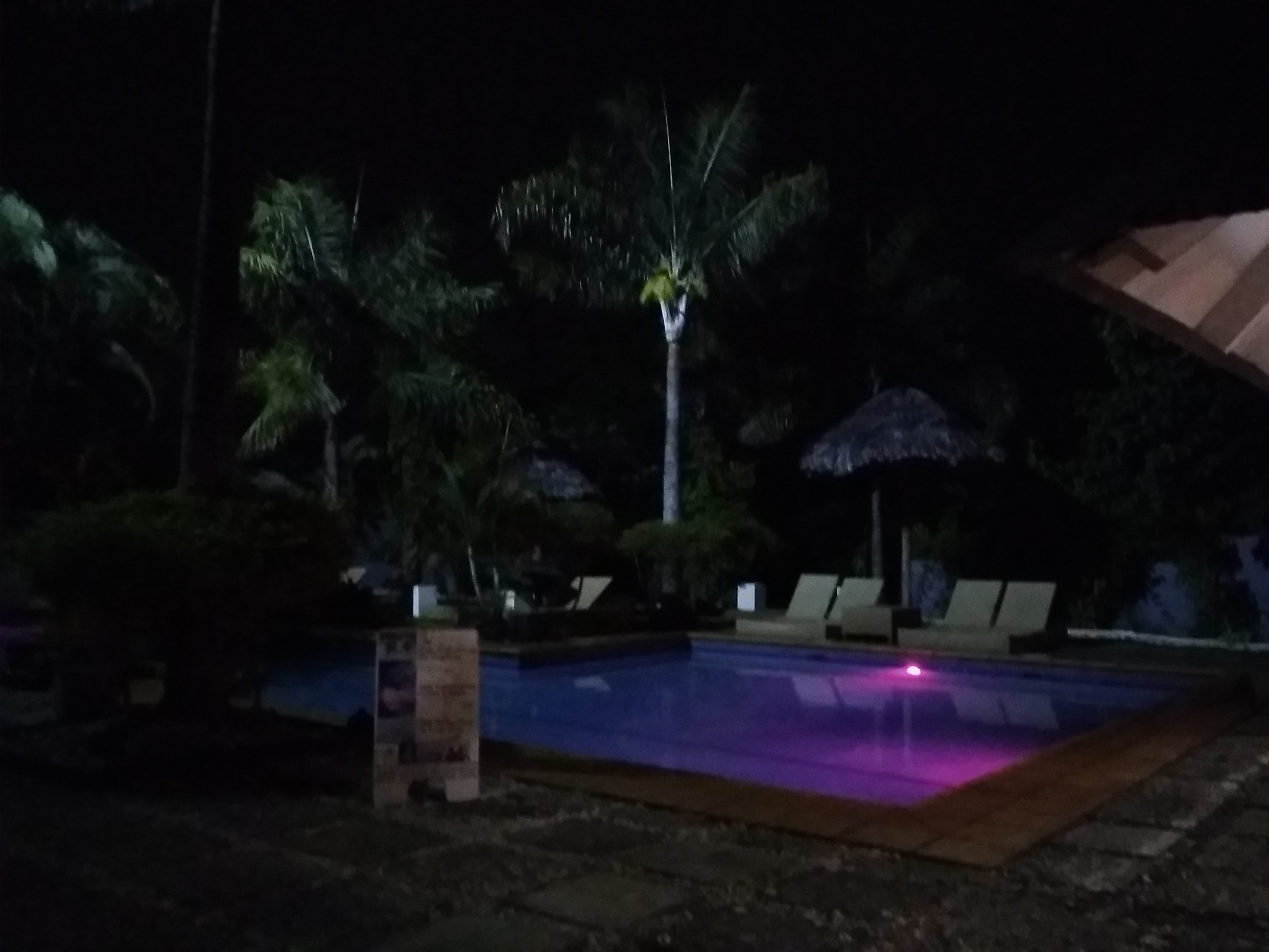 The hotel had shut down for the evening but i was given permission to enjoy the pool as long as i was quiet and didn't wake anybody up. I sunk down into the darkened pool and floated on my back watching the stars peek out from behind scattered clouds in a sky framed by palm trees and occasional fruit bats that flittered from frond to frond feasting on the palm dates. The moon sat low over the canopy of a tall palm and the silvery light gleaned off the trees cluster of coconuts. Staring up like this silently for over an hour i watched as warm south pacific rain showered down on my face. And i smiled.