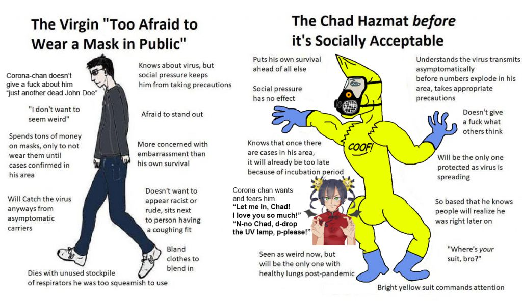 Guy on 4chan goes shopping masked and gloved, and reports that the reaction from the public was suspicious and hostile. Good Lord, I do need to write a post on how fucking STUPID the average person is. Of course, that could have been because 4chan posters are autisically anti-social to begin with ;> [Edit: My brother just got back from the store, which he reports as packed. He also states that a few shoppers were wearing masks]