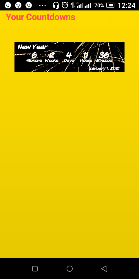 1: In this app you can set countdown for trip to and event you wished to do soon or in a long distance time