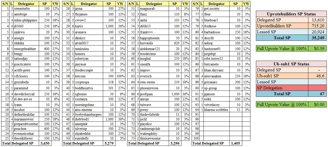 We currently have 94 members with a total delegated SP of 13,610 SP and we leased 20,924 SP. You can check out all the details on the table below.