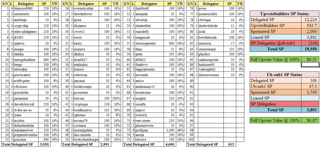 Some members have been kind enough to upgrade their membership by delegating additional SP to their current delegated SP. This is really helping to grow the community SP which in turn grows the value of our upvotes.