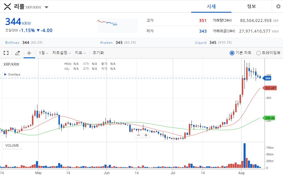 리플 조정중walktoheaven (72)in #palnet • 6 years ago 며칠 전까지도 리플 가격이 급등했었는데.. 지금은 거래량도 많이 줄어들었고 가격 조정 중입니다. 더구나 불과 1달 전 까지만 해도 스팀보다도 낮은 가격이었는데.. 지금은 344원 이니 많이 올랐네요. 스팀은 여전히 250원 대 박스권에서 헤매고 있습니다. 리플은 아직 상승 추세가 꺽이지 않았기 때문에 단기 조정 후 다시 상승할 확률이 높은데... 당분간은 흐름을 지켜봐야 겠습니다. #zzan #jjm #mini