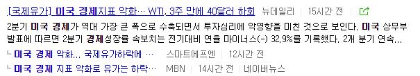미국 쇼크walktoheaven (72)in #palnet • 6 years ago 미국 경제지표가 심각합니다. 미국의 GDP 성장률이 -32.9%를 기록했습니다. 이것은 종전 기록인 1958년 2분기 -10%의 세배 이상입니다. 서부텍사스산 원유도 배럴당 3.3% 떨어진 39.92달러로 40달러가 무너졌습니다. 이정도면 대공황 수준이 아닌가 십네요~ #zzan #jjm #mini