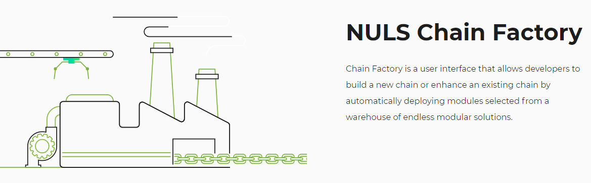 NULS has a chain-factory where the ready-made modular components are available. The enterprises can choose the components of their choice which suit their business needs and can assemble them and can run their own chain based on the parameters set up by them.