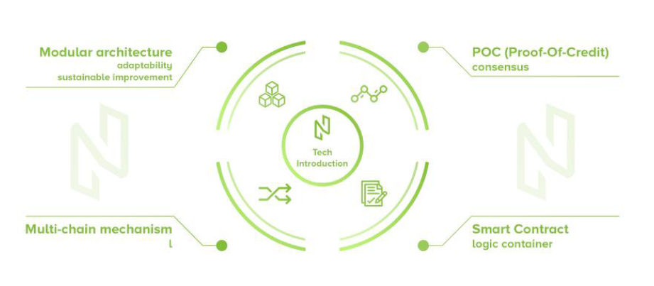 NULS facilitates multi-chain mechanism in its structure. While in the main the chain the consensus is PoC, the sub-chain consensus can be customizable. In other words, in the sub-chain, the enterprises can choose their own consensus protocol such as PoS, DPoS, PoW, dBFT, PoR, etc. The decentralized application can be built on the top of their respective sub-chains. The main chain and the sub-chains can be able to communicate through cross-chain nodes. Simply put, the structure of NULS is interoperable.