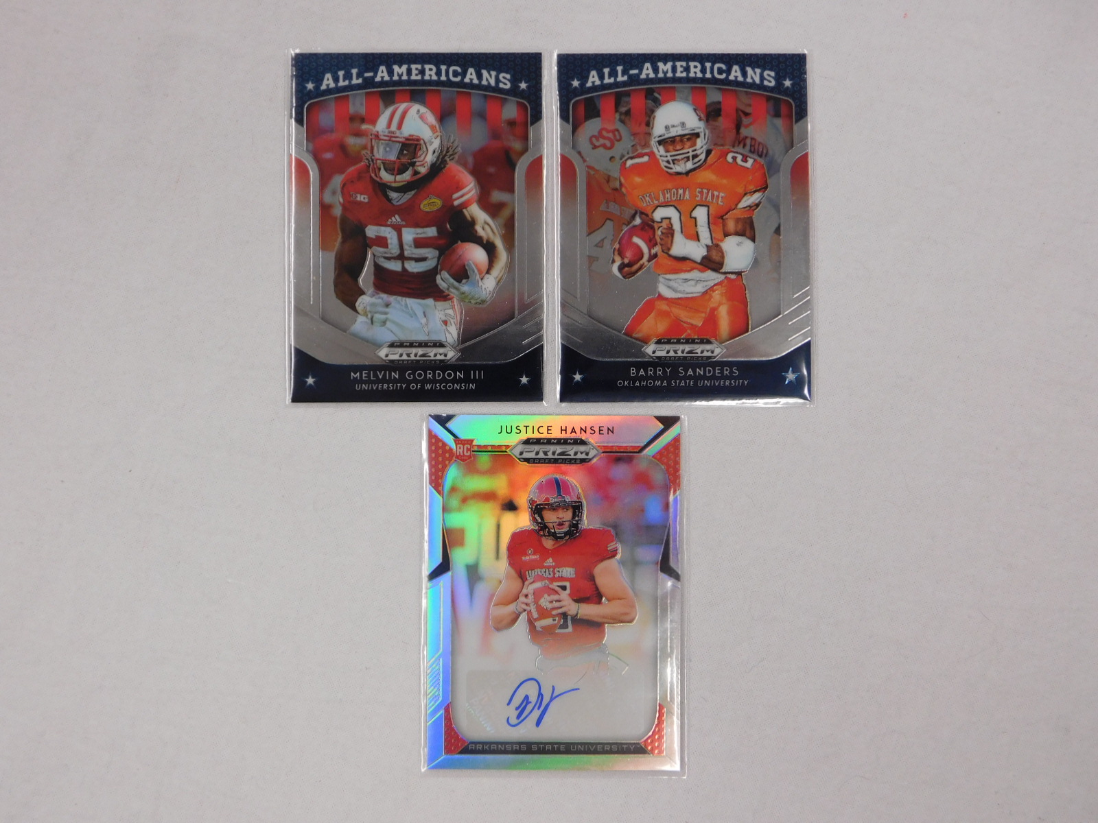 My auto was a silver prizm Justice Hansen rookie. Also two base All-Americans Melvin Gordon and Barry Sanders.