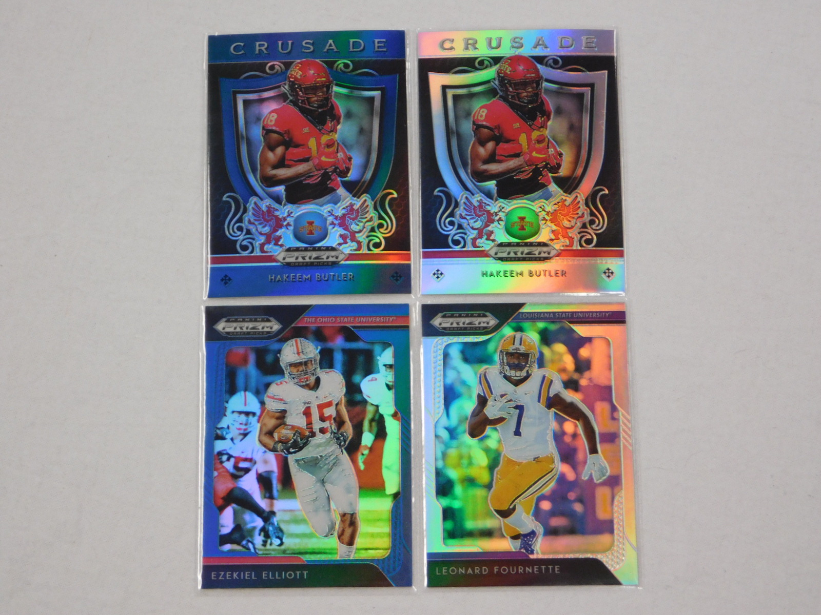 I pulled 4 non-auto prizm cards. Blue prizms of Ezekiel Elliott and Hakeen Butler and Silver prizms of Leonard Fournette and Hakeem Butler.
