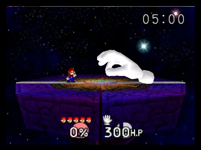 Solo tenemos un único jefe en todo el juego que sería la “Master Hand” es un enemigo que al principio nos podrá parecer difícil, pero con la debida practica y estudiando bien sus patrones podemos observar que simplemente es un enemigo fácil, vale acotar que el juego trae varias dificultades, desde Very Easy hasta Very Hard siendo esta ultima un reto bastante imponente.