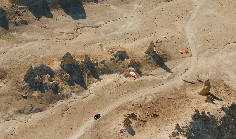 A little while back he was asked to shoot a commercial with Dodge where him and a few other paramotor pilots fly around in the desert.