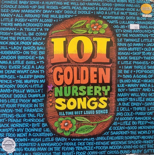 Keeping this in mind, the last time we went to the record store, we were on the hunt for an album he could enjoy, one that would be all his own. Their children’s section was skim, with a few selections of nursery rhymes. However, we did spot this little gem: 101 Golden Nursery Songs: All time Best Loved Songs. We were drawn in by the standard 1970s design of the cover, and a quick glance at the back cover revealed the LP had some of our son’s favorites on it and some that we loved from our childhoods too.