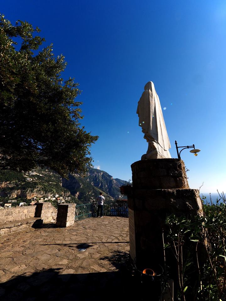 포지타노가 바라 보이는 장소에 만든 휴계소성모마리아 상이 세워져 있다