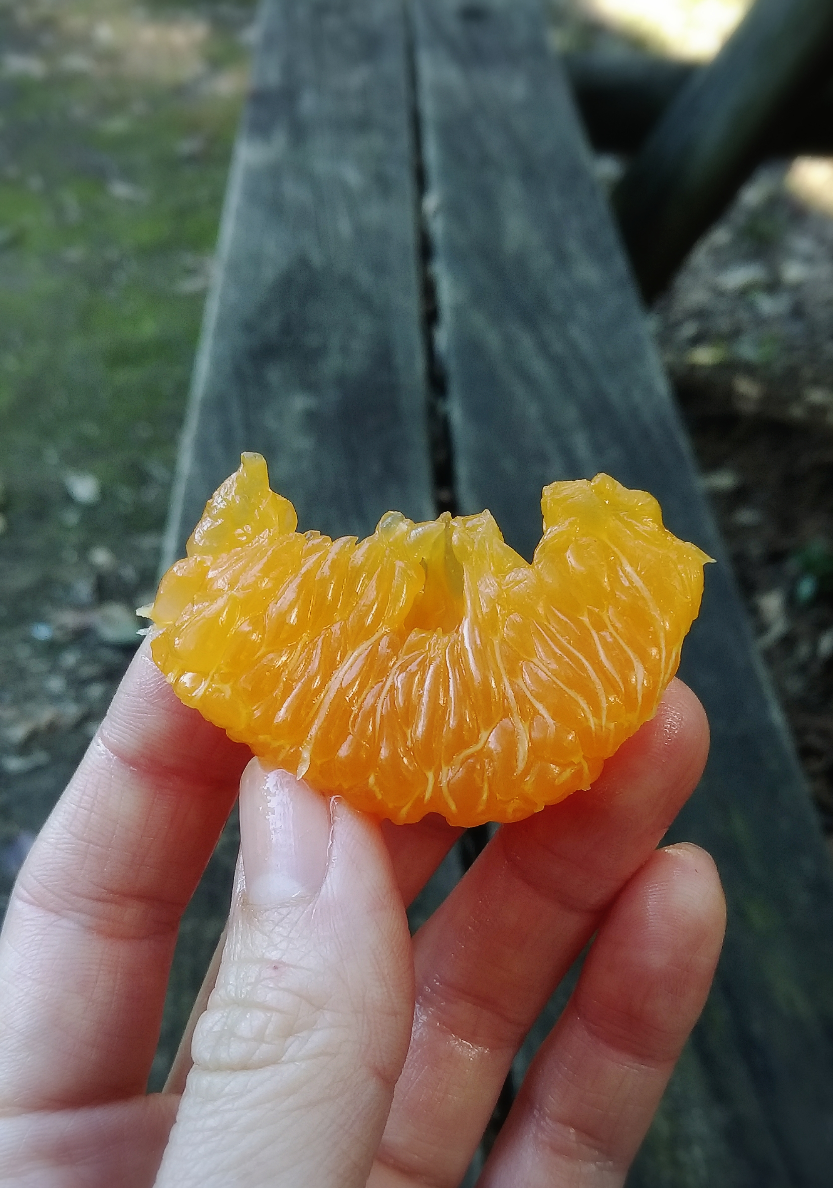and some fruit, here's a peeled, skinned, and de-seeded mandarin ready for Prince L to enjoy.