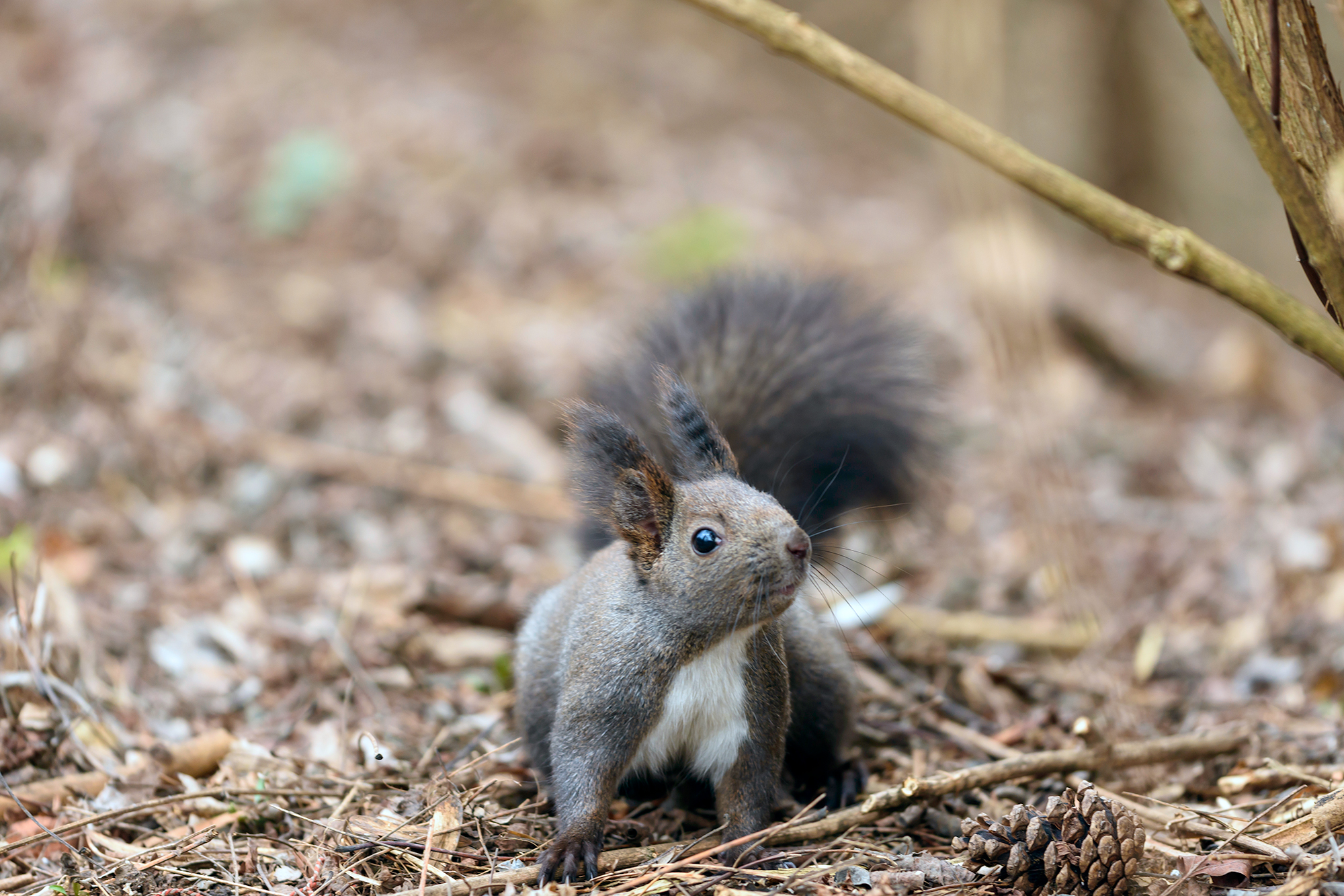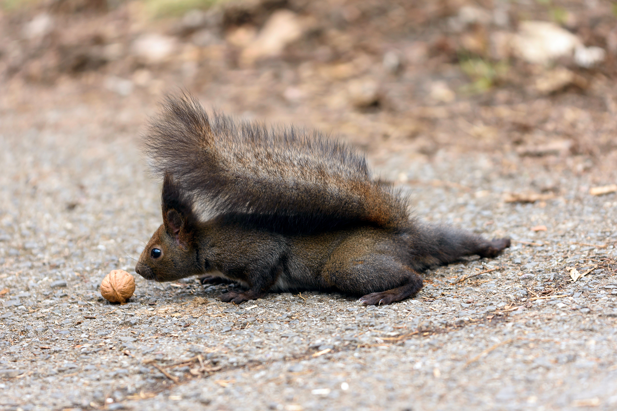 it turned out that the squirrels at this time of the year have thick fur and a rather guarded appearance