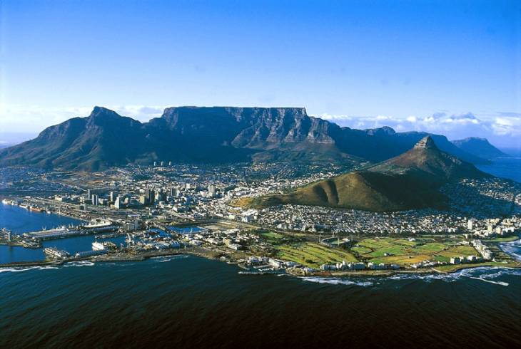 Table Mountain (Khoikhoi: Hoerikwaggo, Afrikaans: Tafelberg) is a flat-topped mountain forming a prominent landmark overlooking the city of Cape Town in South Africa. It is a significant tourist attraction, with many visitors using the cableway or hiking to the top. The mountain forms part of the Table Mountain National Park. Table Mountain is home to large array of fauna and flora, most of which is endemic