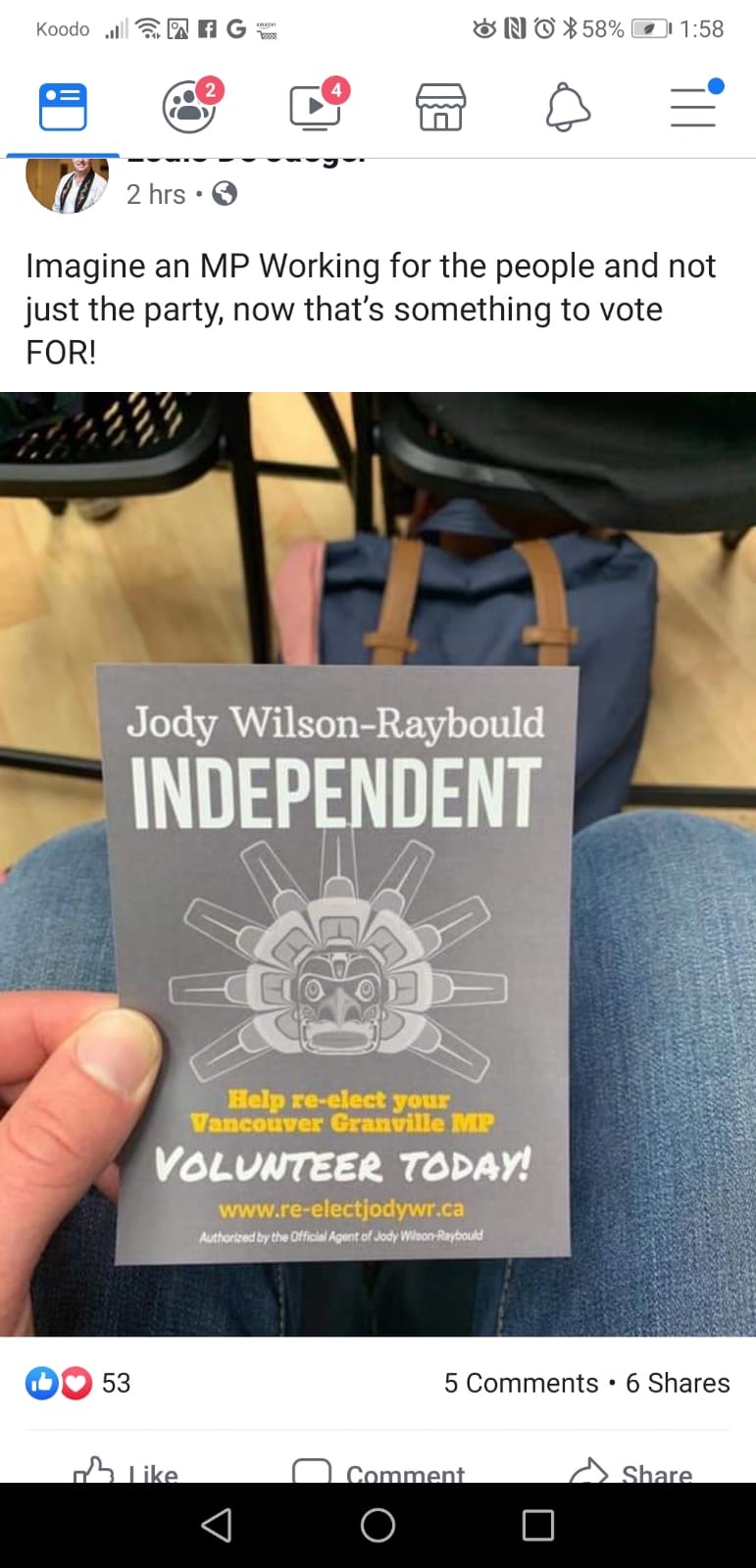 I’m glad that Jody is keeping her name in the race for parliament.