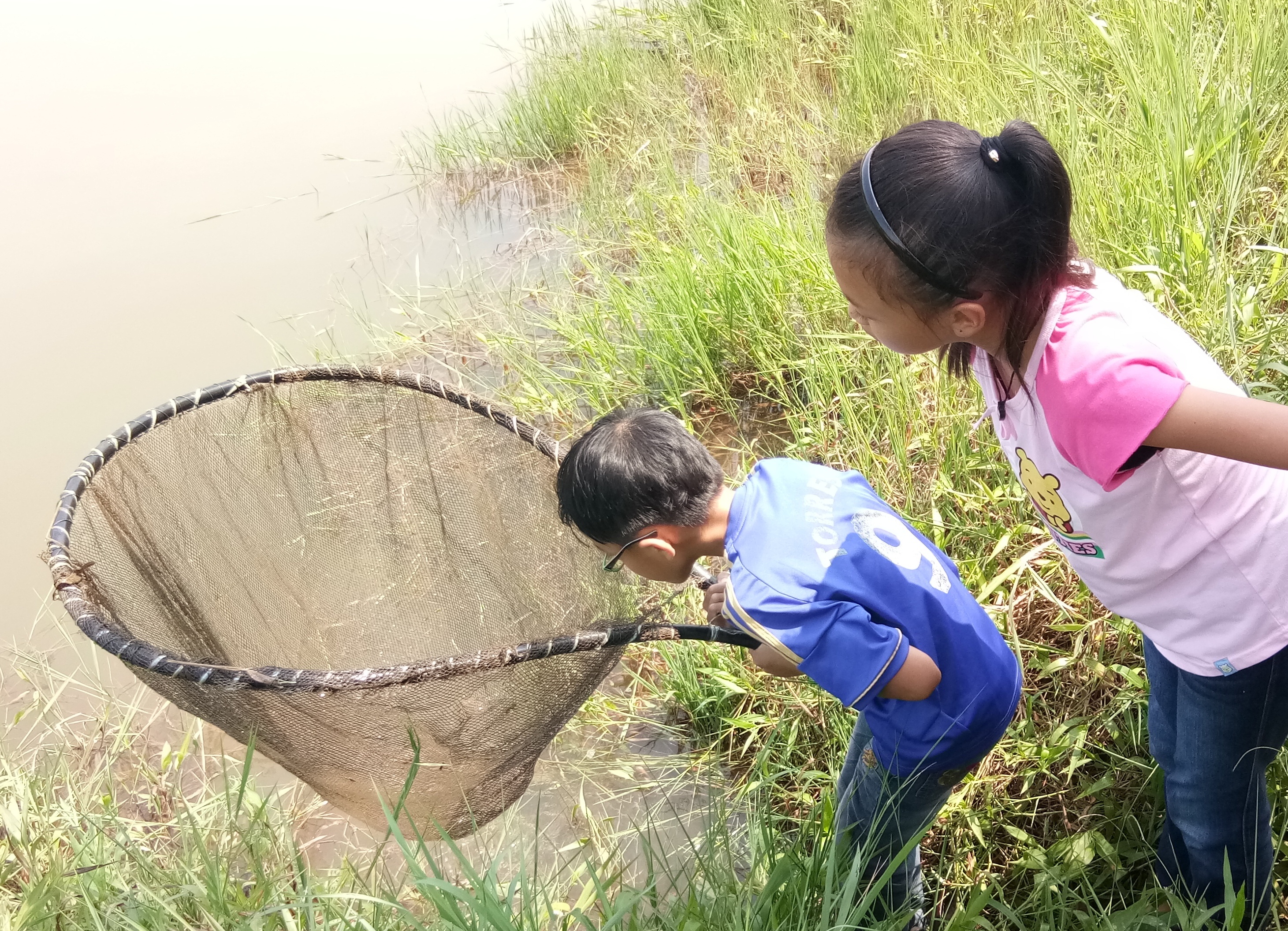 I had a great day with my cousins. Oh yea! Catching fish with net in the fishpond at grandpa house. We caught a couple small fish and prawn. It's a lot of fun.