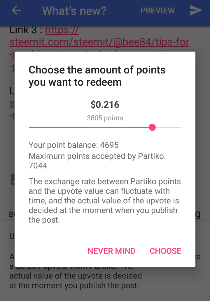 Remember, you can redeem your points only when you publish a post through Partiko
