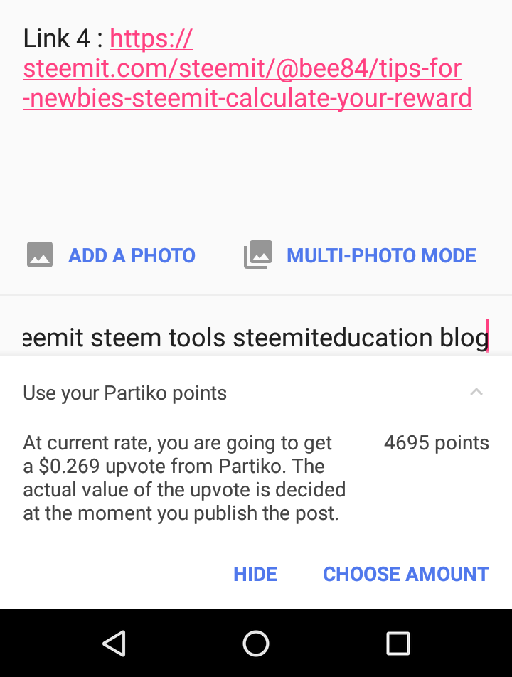 Partiko is a great app. I've been using for awhile now but didn't really pay attention to the points. On the iPhone I do not see a way to use the points when posting, maybe that is specific to android?