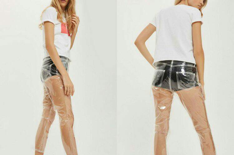 Jeans yog feem ntau synonymous nrog denim, tab sis British zam tuam txhab Topshop zoo li xav ua haujlwm yas dhau lawm. Nws 100% polyurethane pom-dhau lub ris tsho mus muag lub hli tas los rau ib qho kev poob siab $ 100, thiab tau txais qee qhov tsis zoo-haum rau hauv online.