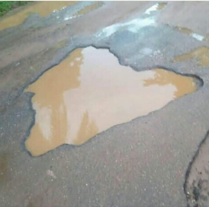 Map of Nigeria is been seen on the road of Nigeria, due to the bad road it has made a design of its country map, what a wonderful thing.