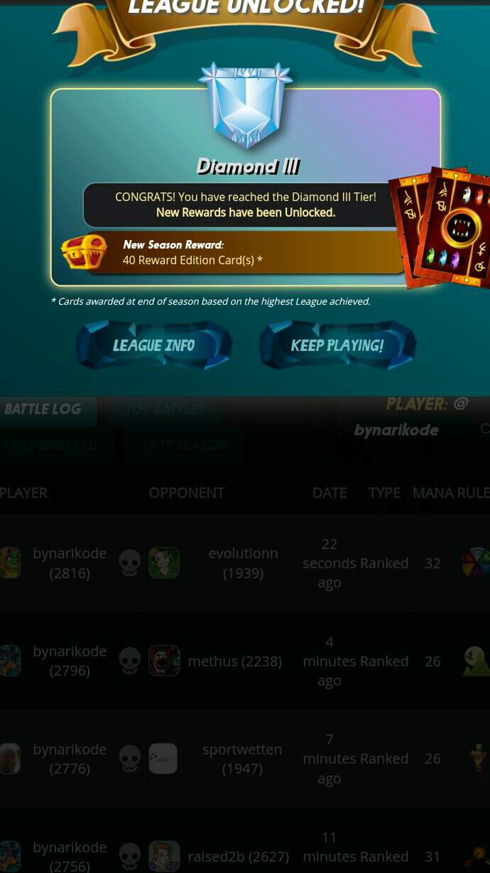 This made it possible to get max orbs of legendary and gold cards and ultimately to reach diamond.