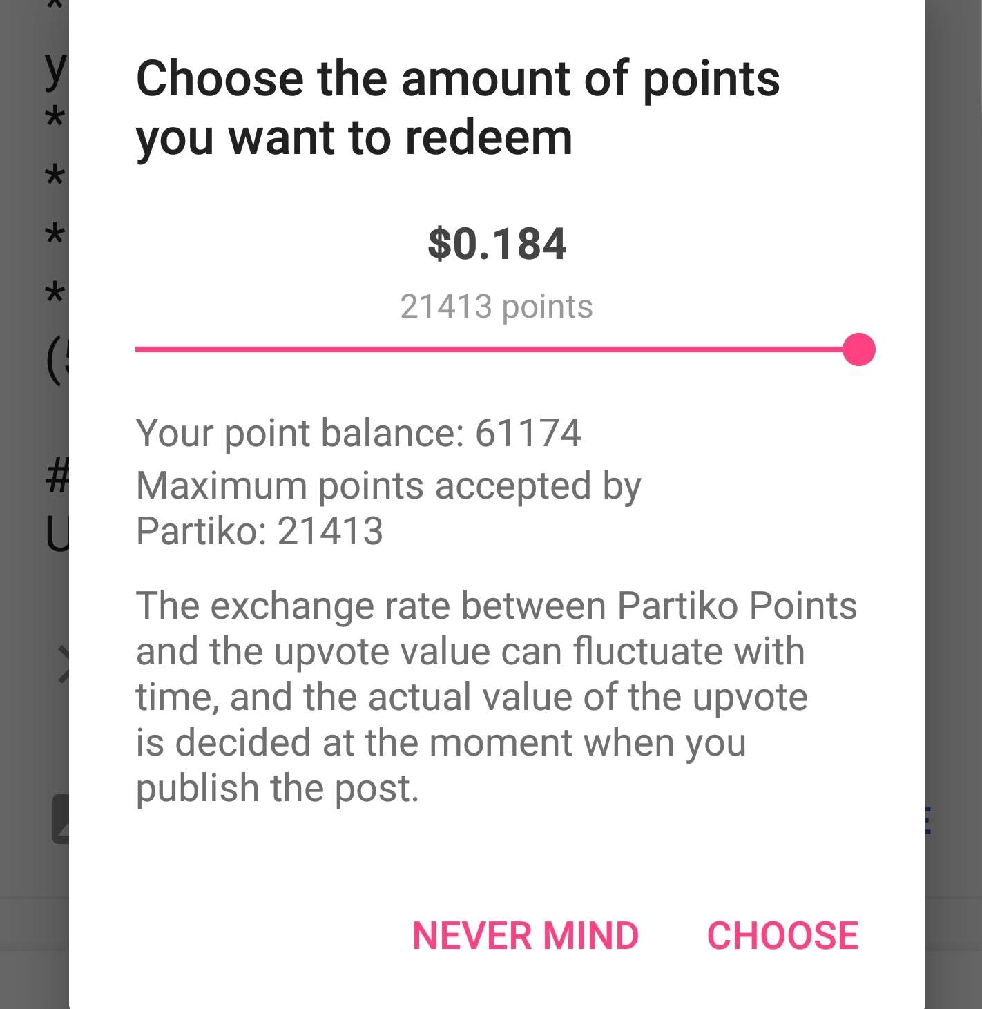 - Use Partiko Points section to choose the number of points you want to redeem. (You can do this 3 Per day)