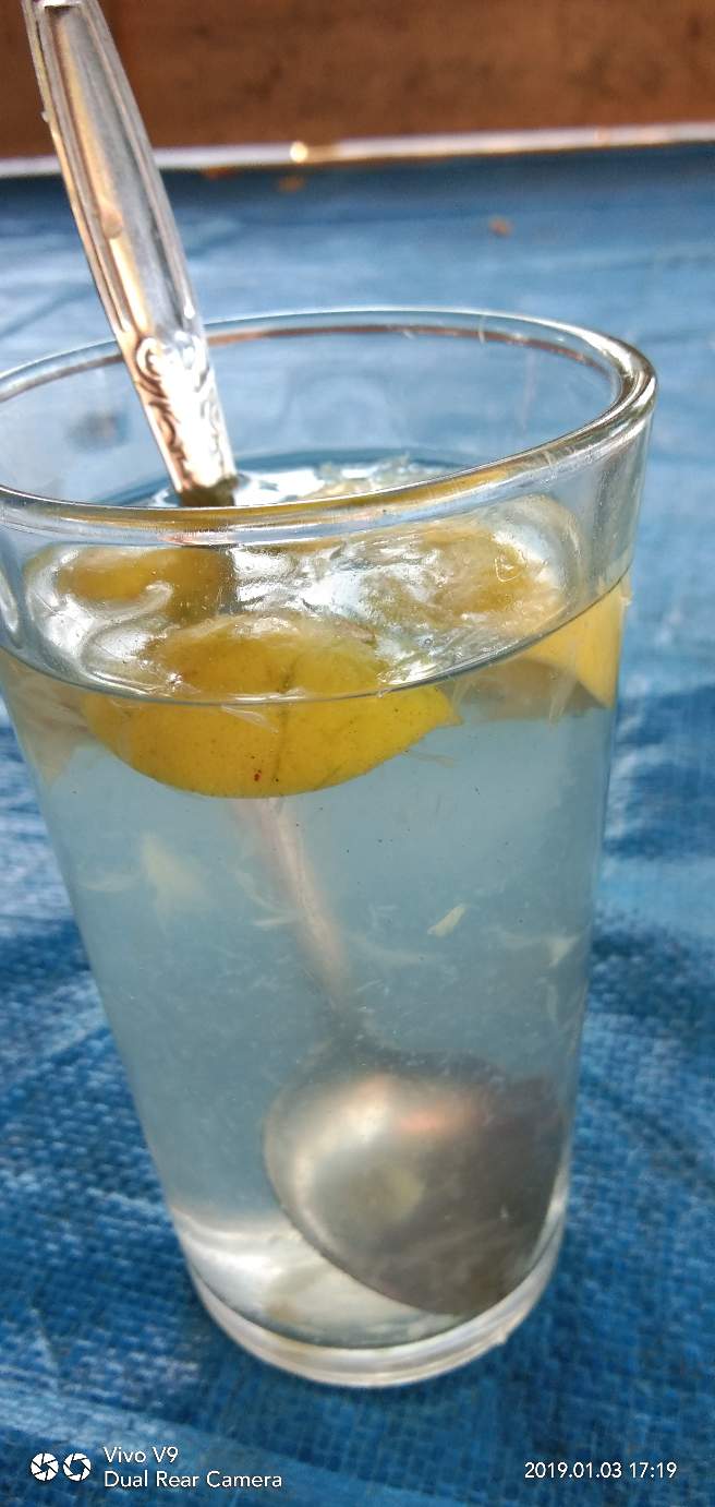Tinggal aduk air hangat ukuran segelas dengan satu sendok gula pasir lalu campurkan dengan air jeruk purut sekalian dengan kulit luarnya.