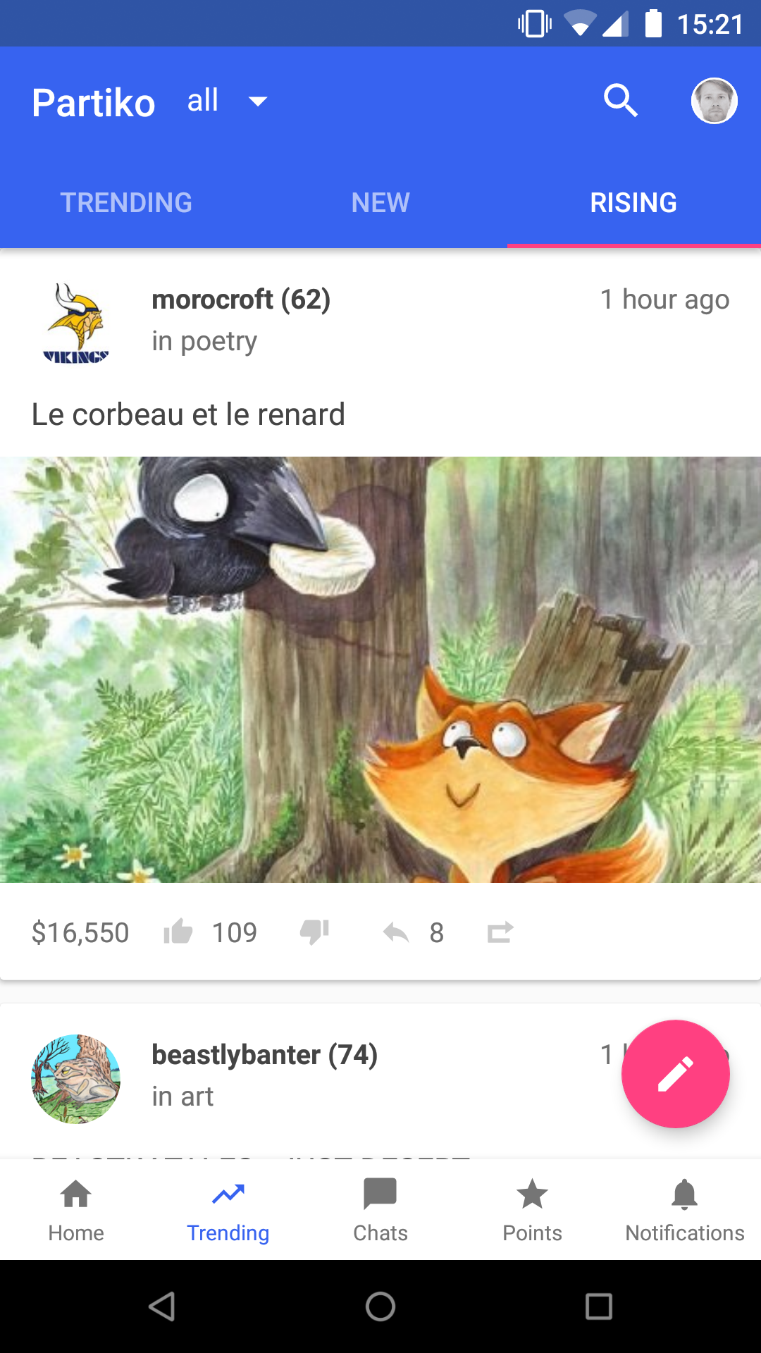 When it comes to basic functionality both are pretty much the same (but as I mentioned, Partiko isn't able to show tables, which is a bummer). Also both reward their users with points, that can be traded for upvotes (like I'm using for this post), eSteem rewards more actions, but you can't use them for anything right now. I assume that this is going to change in the near future. It is a rather simple thing, but it does increase your motivation to use the app (it surely did for me). One thing I have to mention is, that one of the ways to earn this points in Partiko is by watching ads, this could turn off some people, but luckily it is optional. Another kind of annoying thing that Partiko does is putting a smal link t the end of every post or comment you make. I understand that it helps to spread the word, but it is still annoying and the only way to get rid of it, is by editing it later.