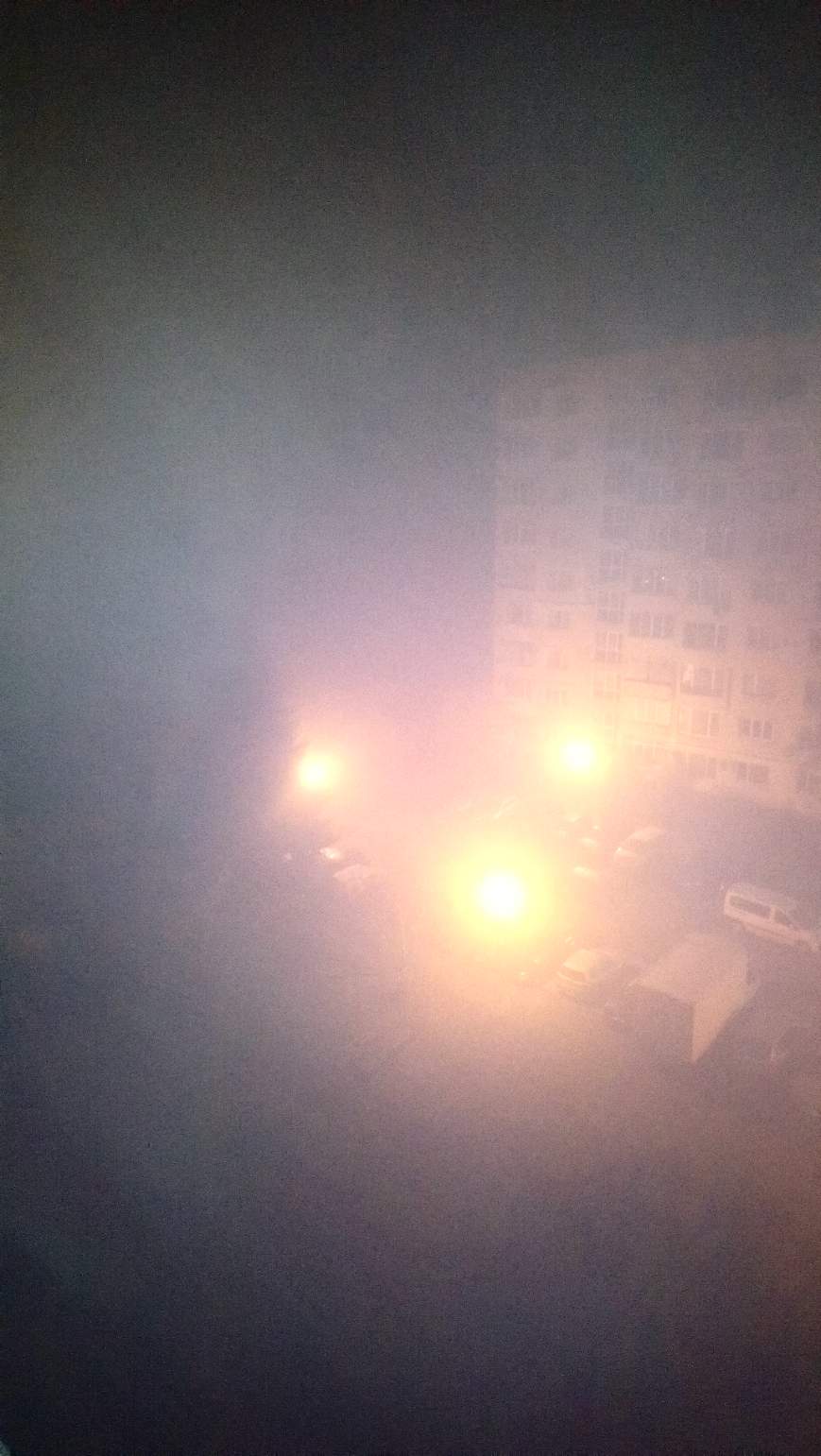 Мъглата се спусна от нищото за няма и един час. Супер гъста, тежка и непрогледна. Сякаш нещо дебне в нея, като по филмите на ужасите. Мъглата не идва сама... :D и определено си е зловеща. Да виждаш трудно и едва едва пред теб, си е леко притеснително.