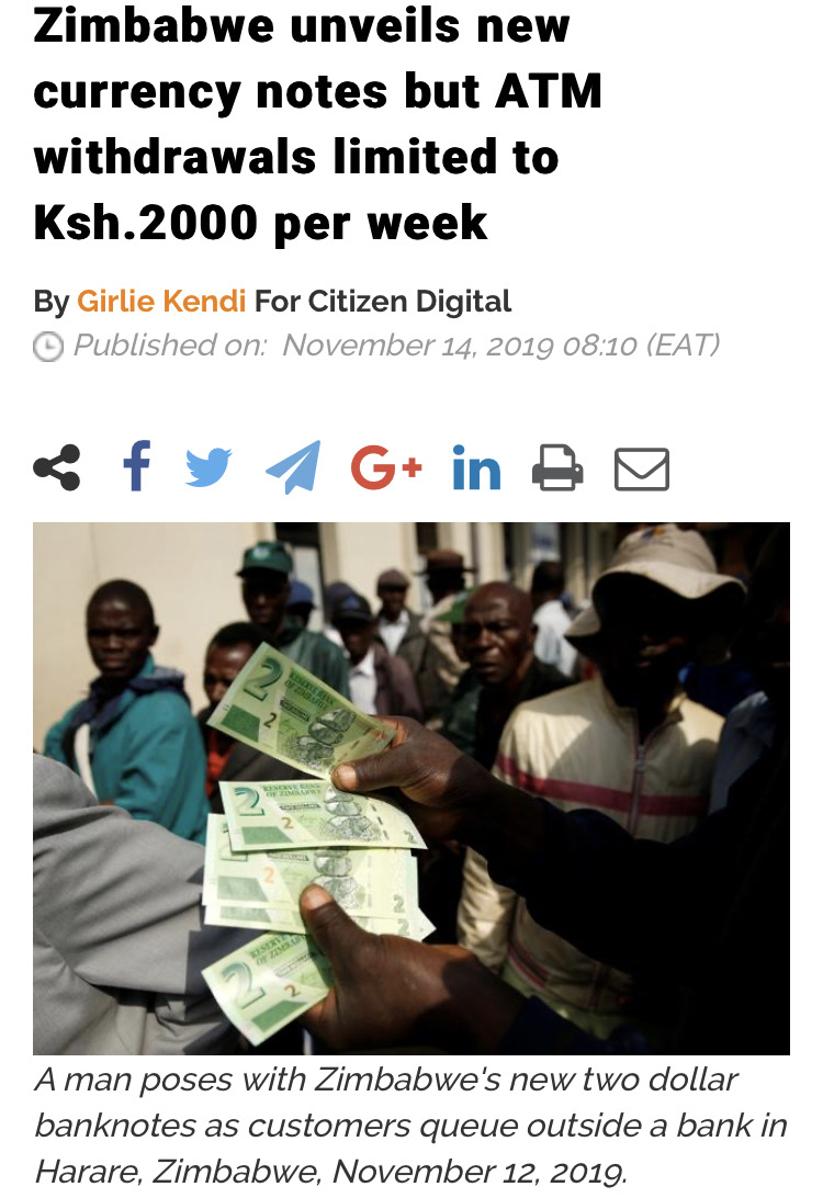 $20 a week withdraw from banks. Ouch https://citizentv.co.ke/business/zimbabwe-unveils-new-currency-notes-but-atm-withdrawals-limited-to-ksh-2000-per-week-293231/