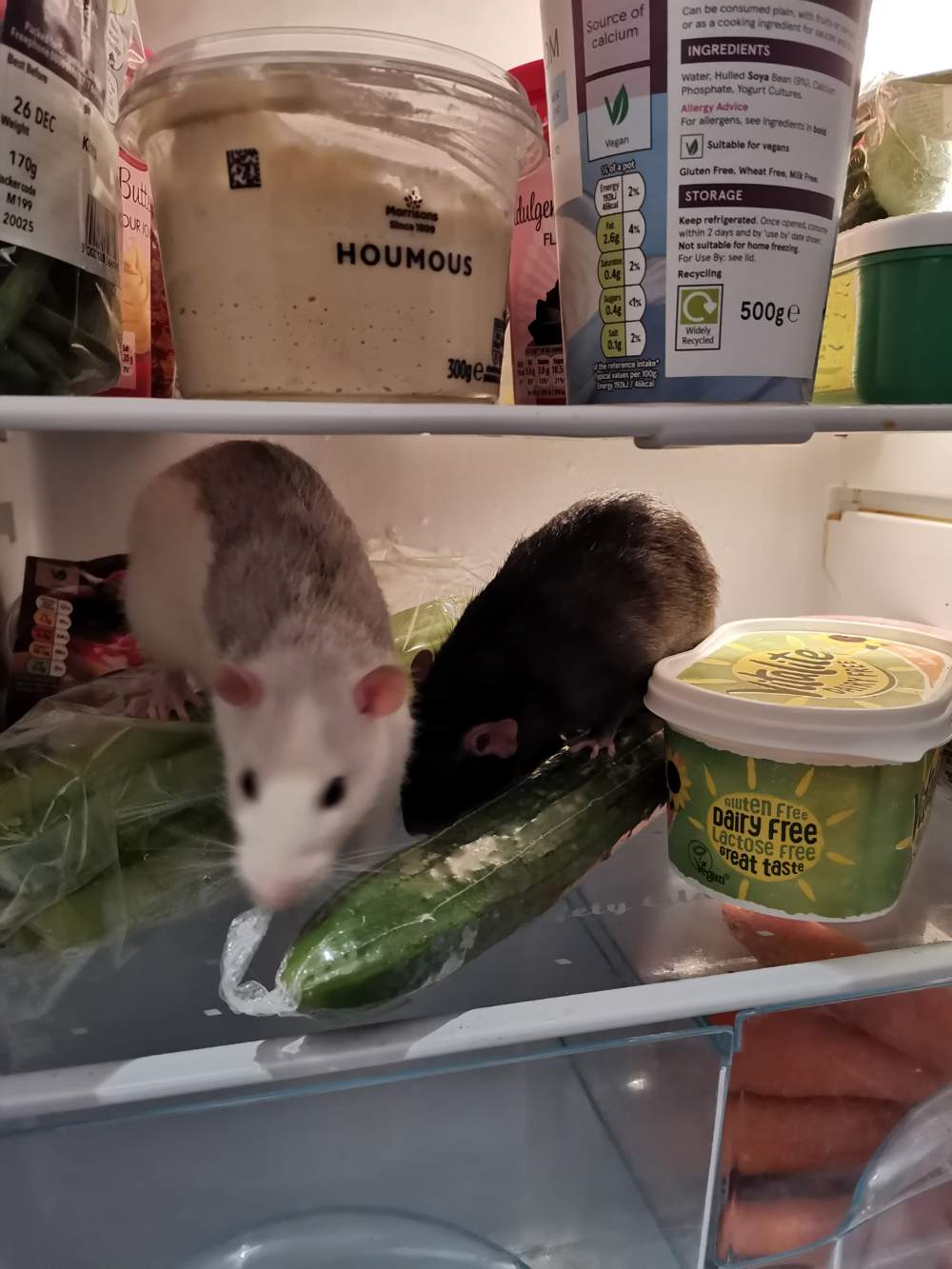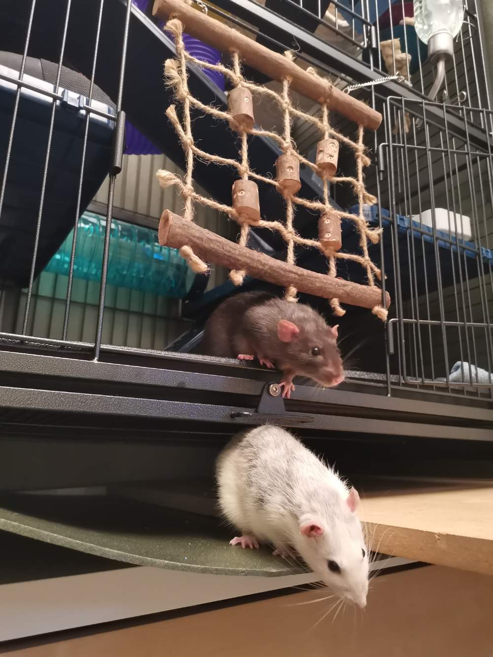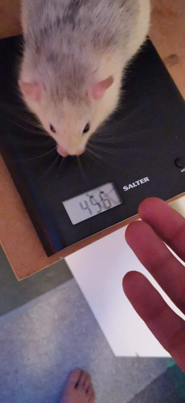 Splinter is at a perfect weight at the moment, he has a lot more energy and is far more active so he can enjoy more food. I will be monitoring him very closely and have started to feed them one at a time with fresh fruit and vegetables every night. During the day they have an unlimited supply of rat block food if they wish to snack it. But I'm constantly providing them with a range of fresh food twice a day. They get around 2/3 hours of playtime outside the cage, most of the time they are free-roaming when im at home but if I've been out at work all day then they are happy to chill in their cage.