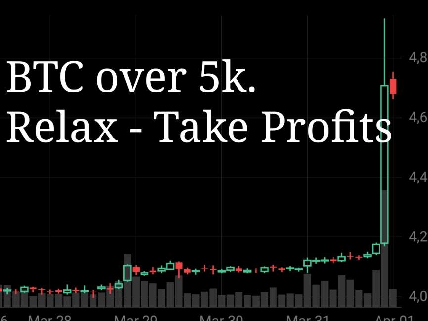 An explosive move occurred tonight when Bitcoin peaked at just over $5,100 before losing steam and coming down a few percent. The rise was over a twenty two percent daily gain and saw an increase in price of around $1,000.