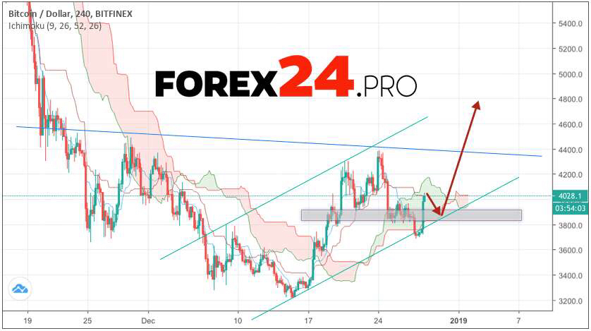 Bitcoin forecast & analysis BTC/USD December 30, 2018 imply an attempt to increase cryptocurrency and a test of the support level near the area of 3900.