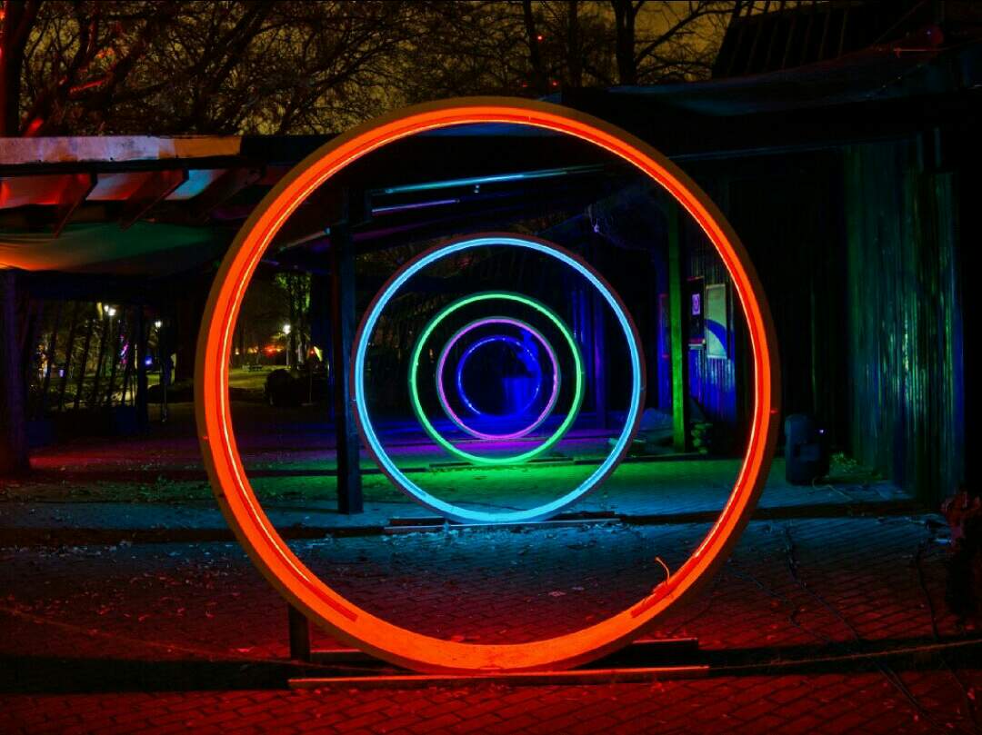 Bei bestimmten Events wird er nachts bunt angestrahlt und das zeigt einem ganz neue Facetten.