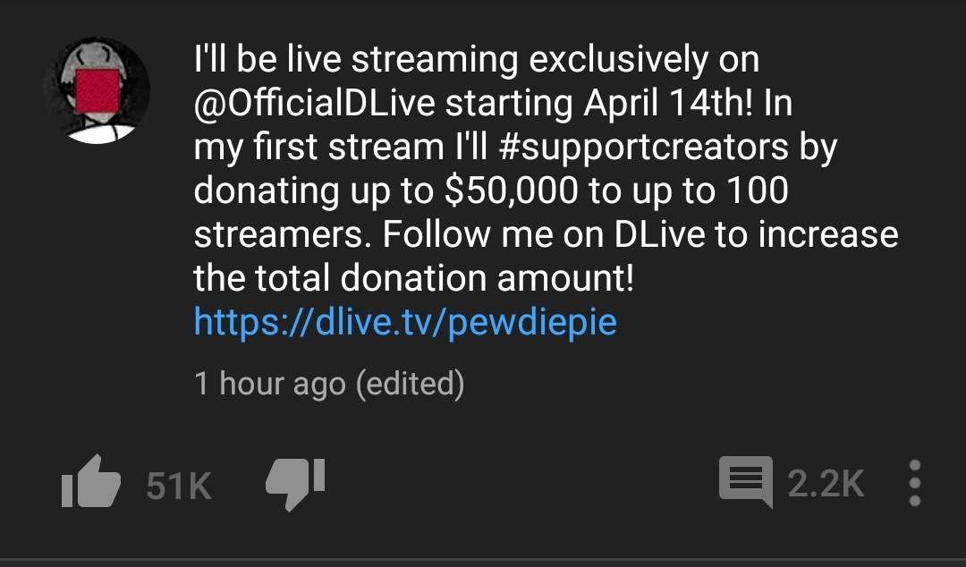 Still mad at dlive for exit scamming steemit? ... Feel the wrath because pewdiepie just joined dlive... This is huge.