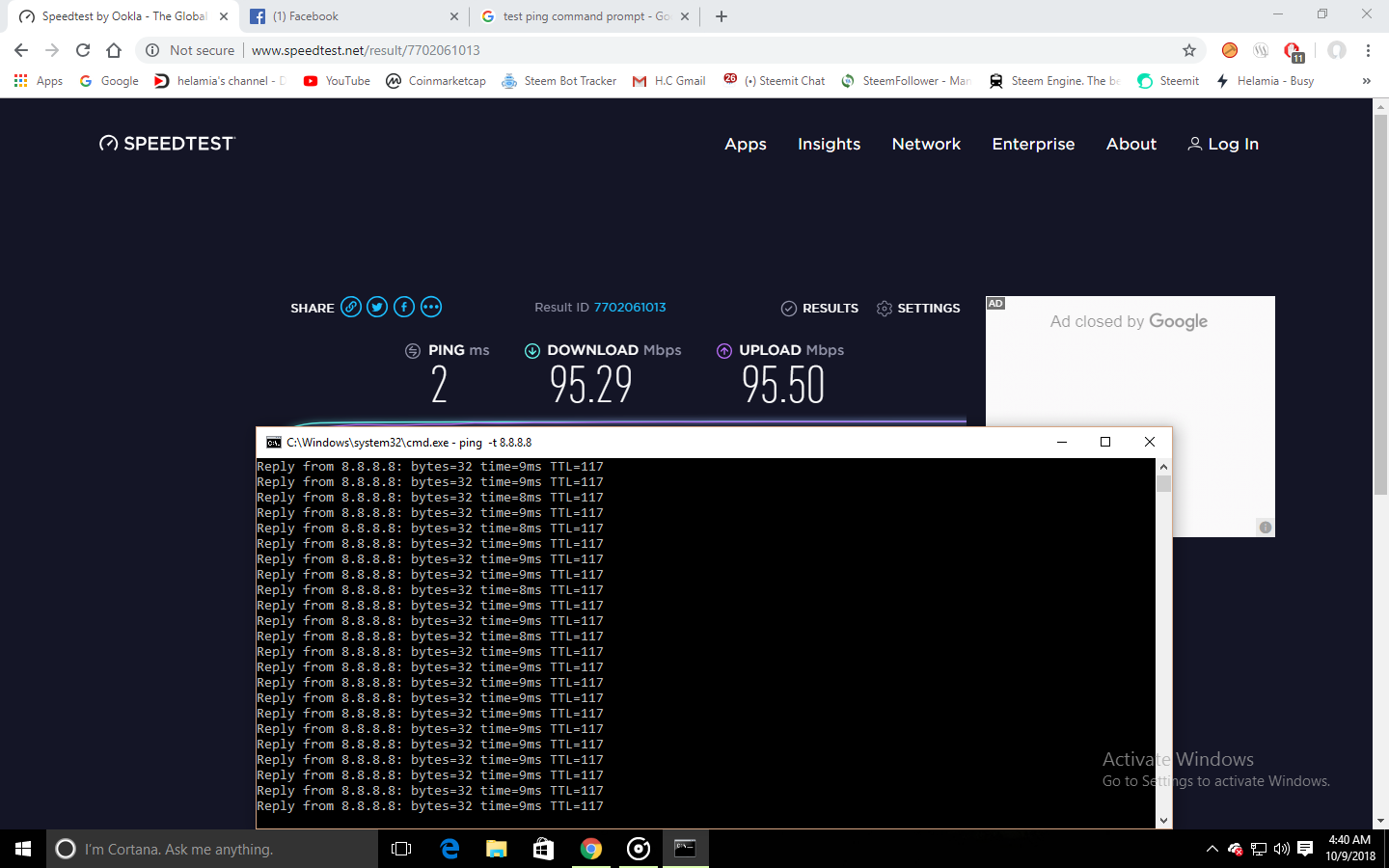 After i finnished running the tests of ping then i started checking the download and upload speed by downloading huge files / games etc.