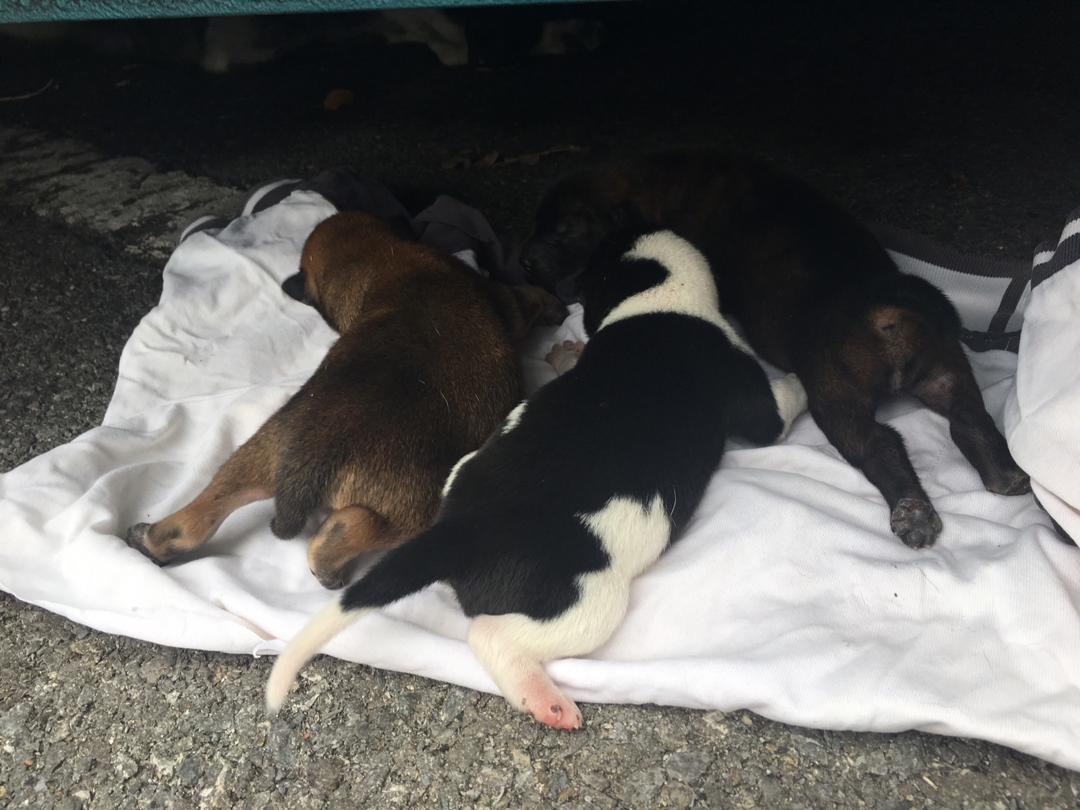 车地下有3⃣️只新生狗宝宝。