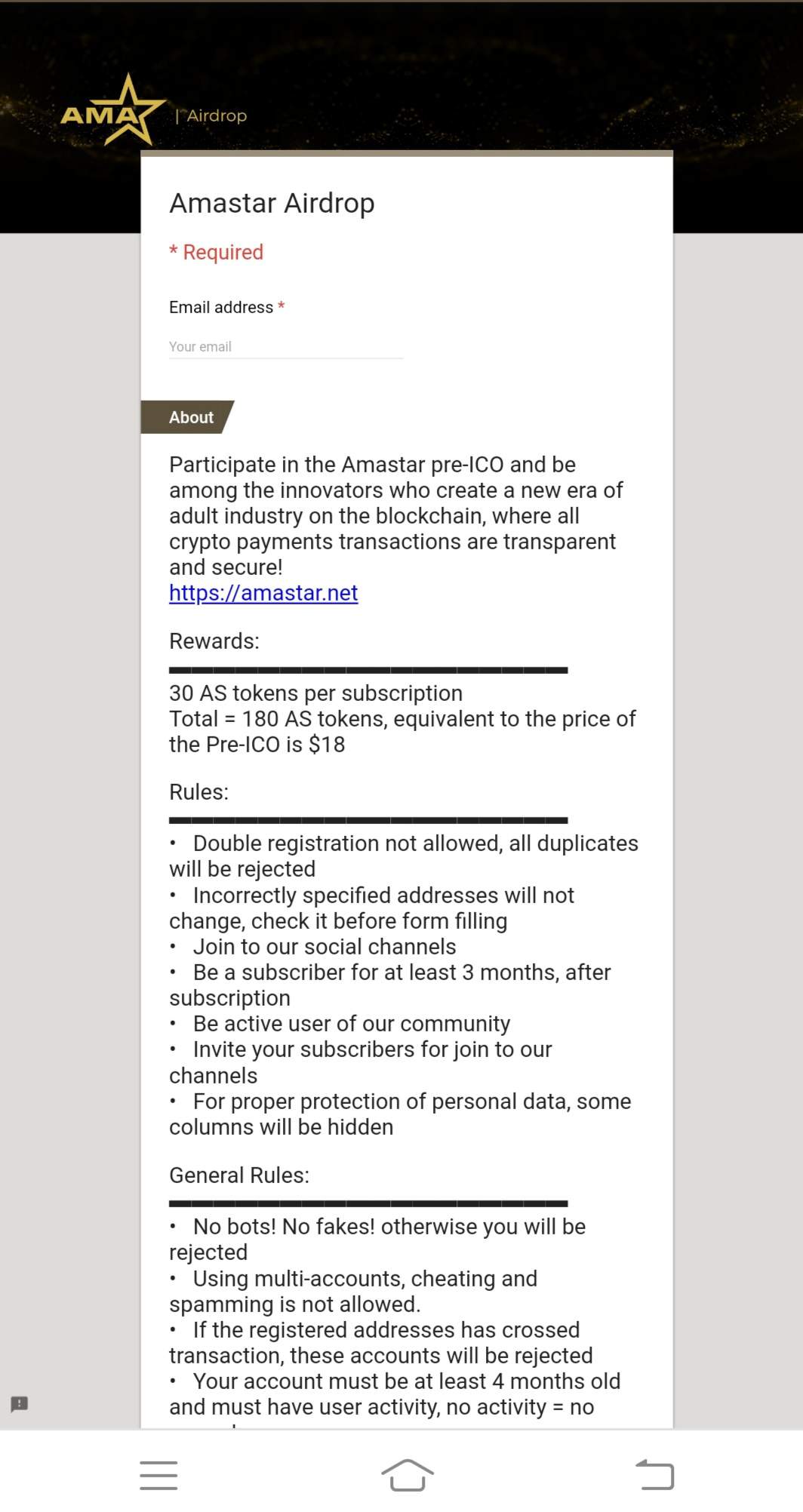 AmaStar is a blockchain-based platform where anyone can upload their own content - and get paid for it! Our unique algorithm will calculate the reward for each content piece based on its popularity. Complete transparency achieved by blockchain - 90% of ad revenue is paid out to content makers.