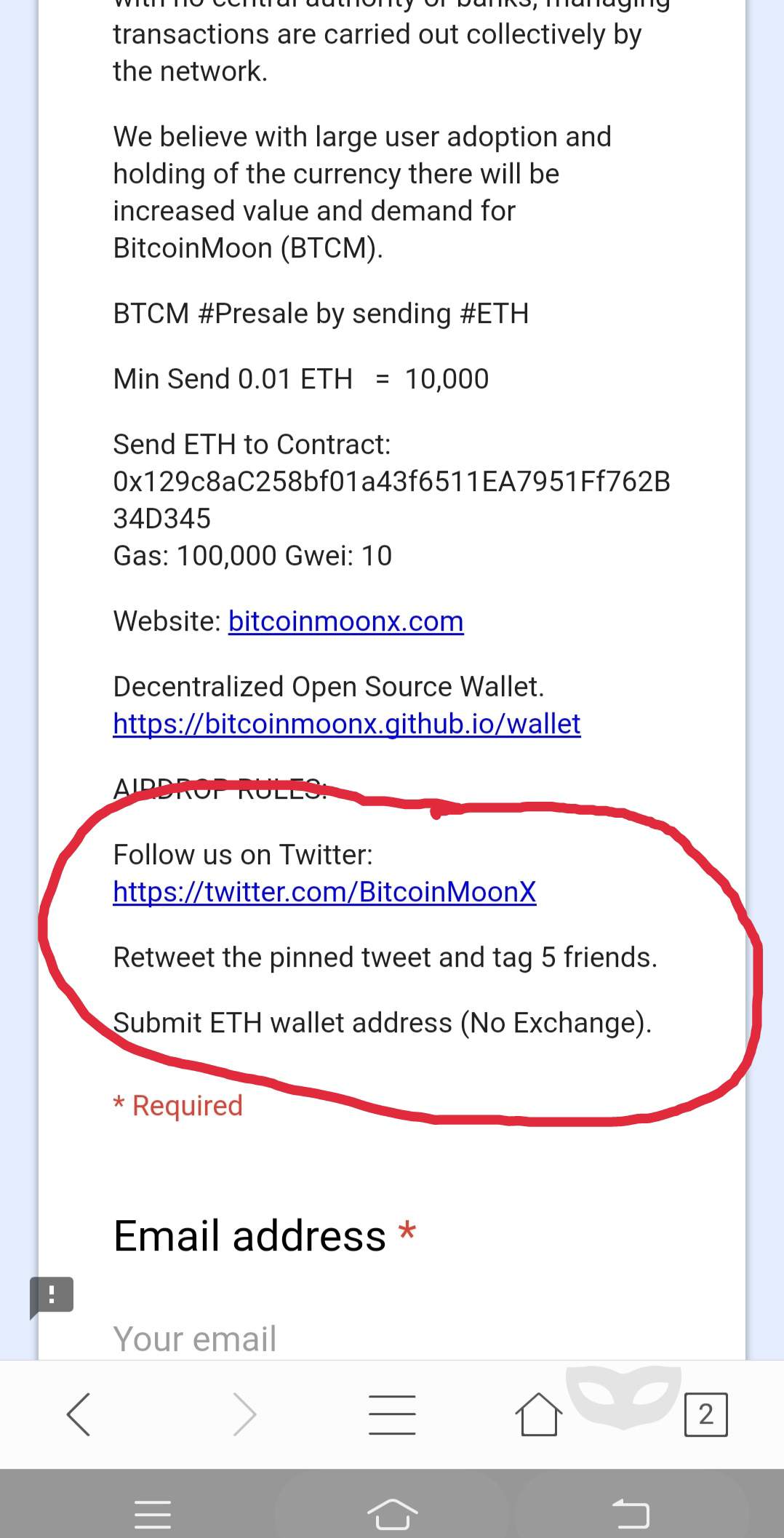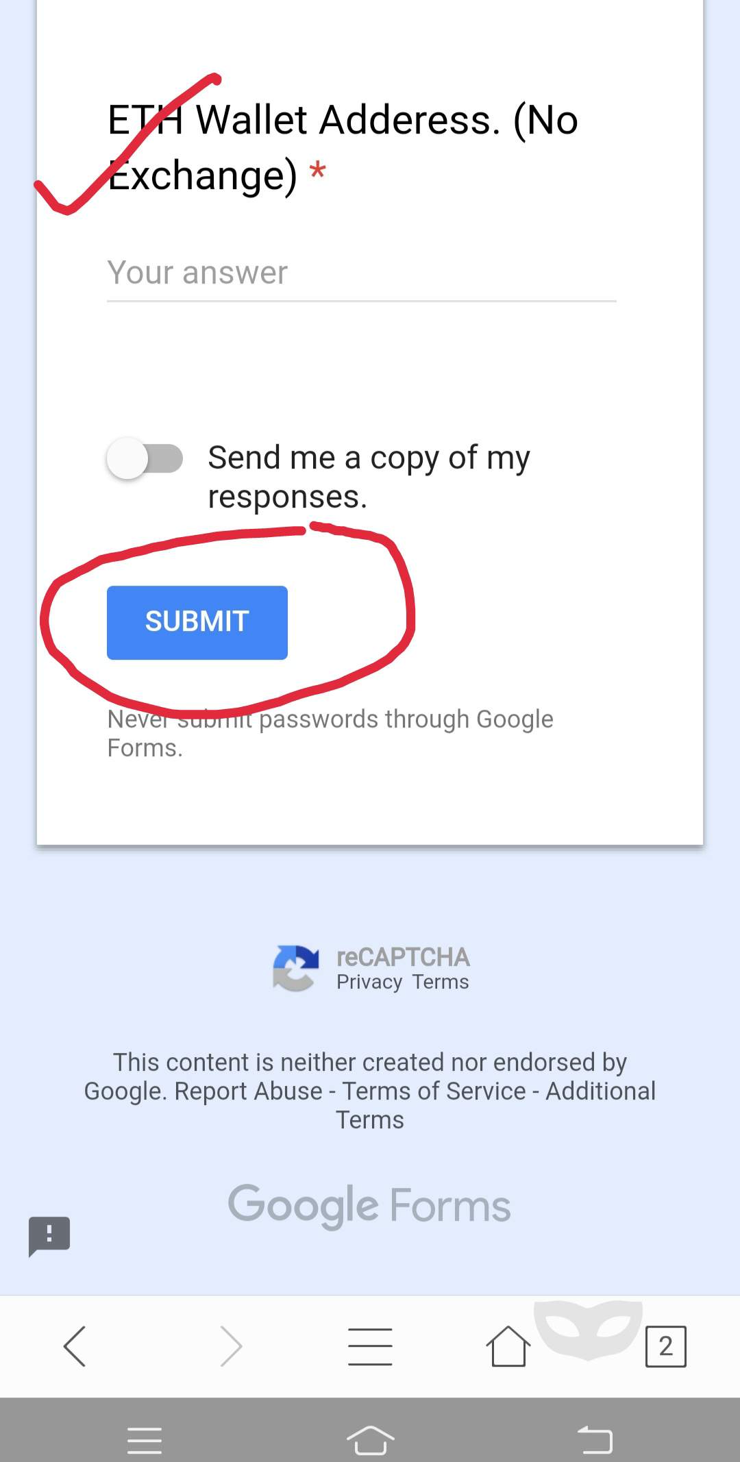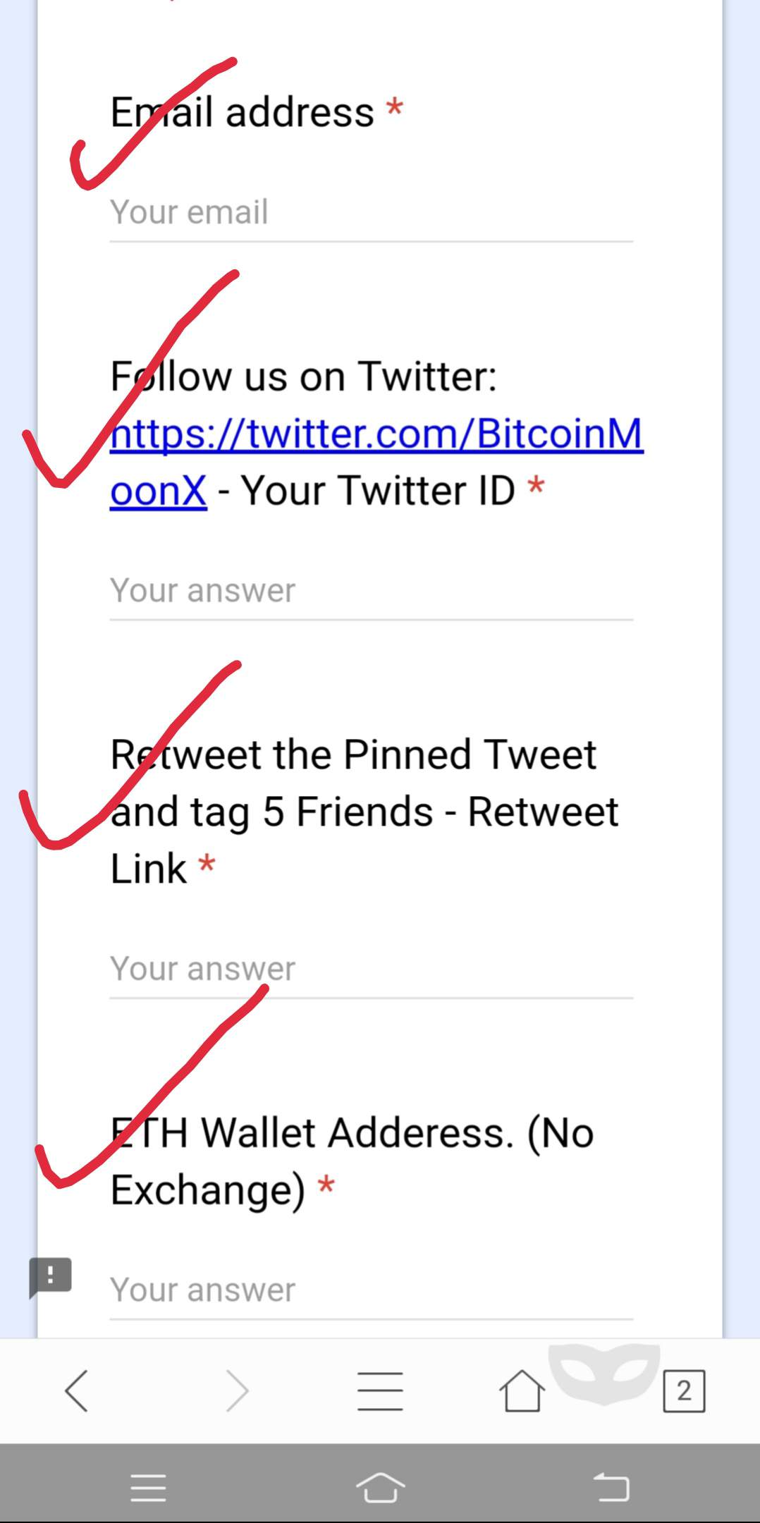 Check your ERC-20 wallet address before submitting Form.