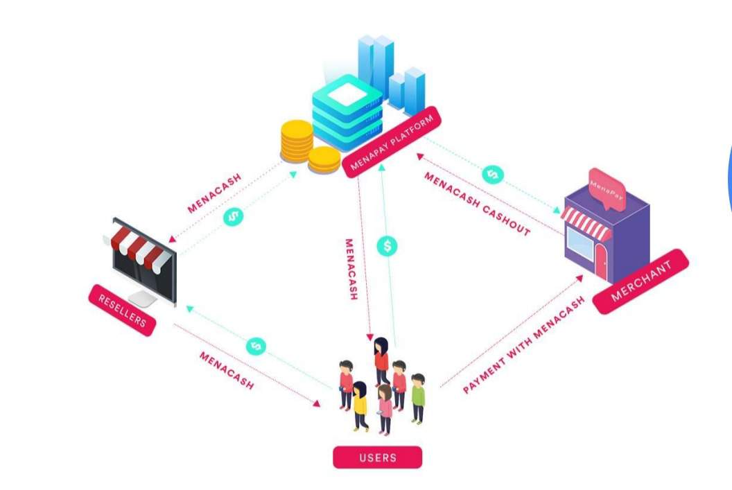MenaCash; is a stable cryptocurrency of the MenaPay platform which will be used for daily transactions between 3 dynamics in the system; users, merchants and foundation. Transactions between users P2P (peer to peer), transactions between users and merchants P2M (peer to merchant) and transactions between approved merchants and MenaPay Foundation for conversion of their MenaCash to fiat currency purposes M2F (merchant to foundation) will be possible by using MenaCash.