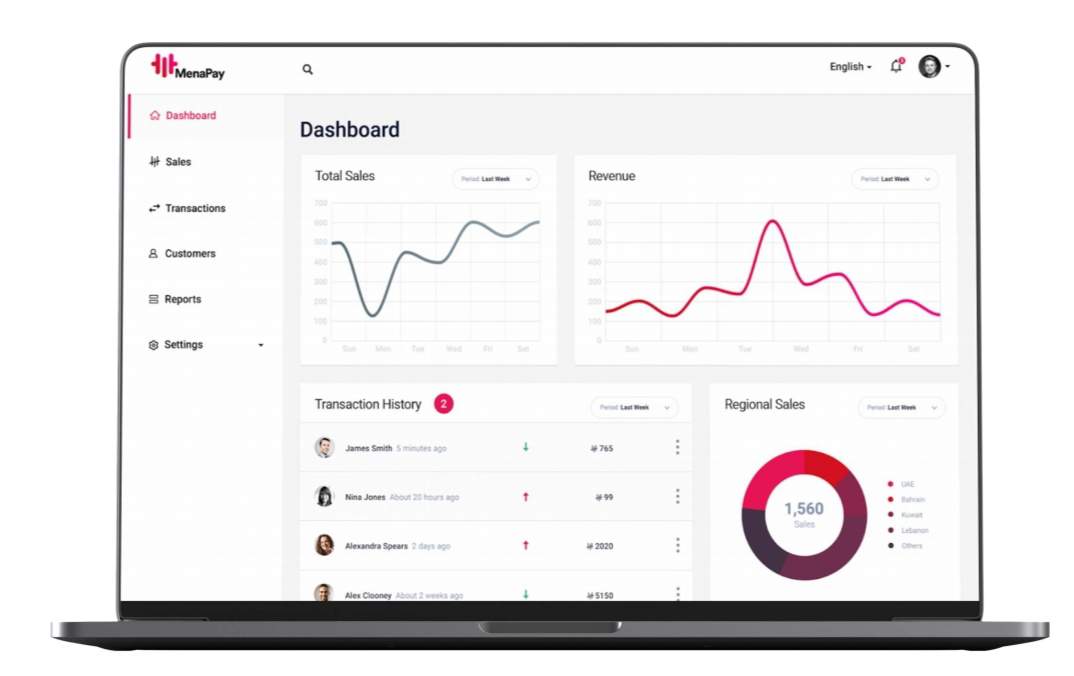 • Track the number of transactions, transaction volume and Transaction ID, customer ID, Revenue, Payment Status, Date, etc. processed over the MenaPay Platform and get detailed reports within seconds.