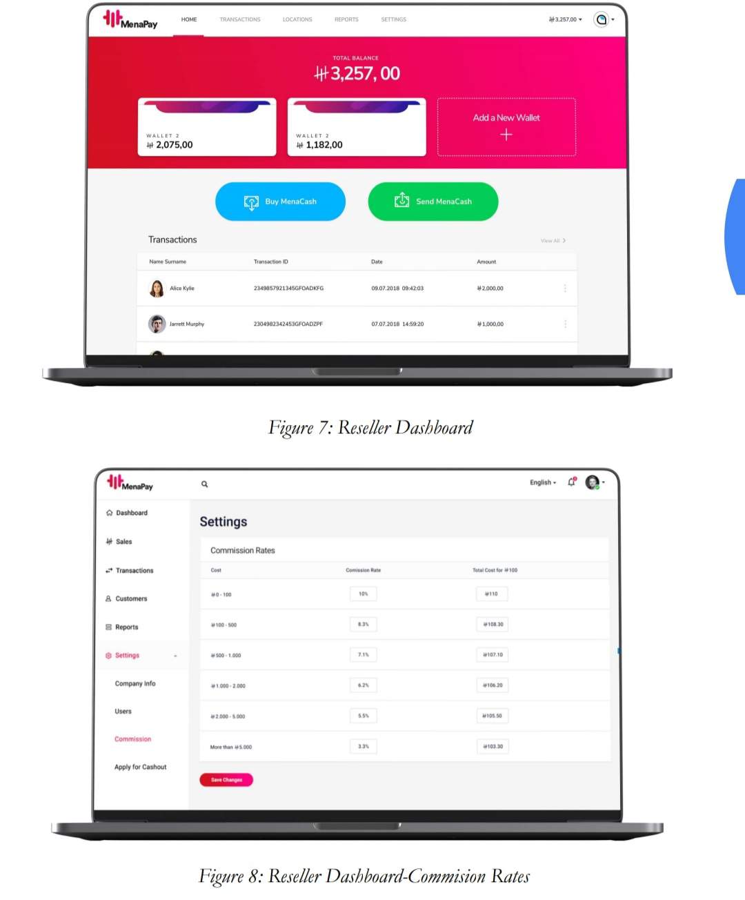 • Join the “Approved Merchant” network and cash out their MenaCash.\n\n• Dynamically change their commission percentages on their sales and build a commission system according to price ranges.