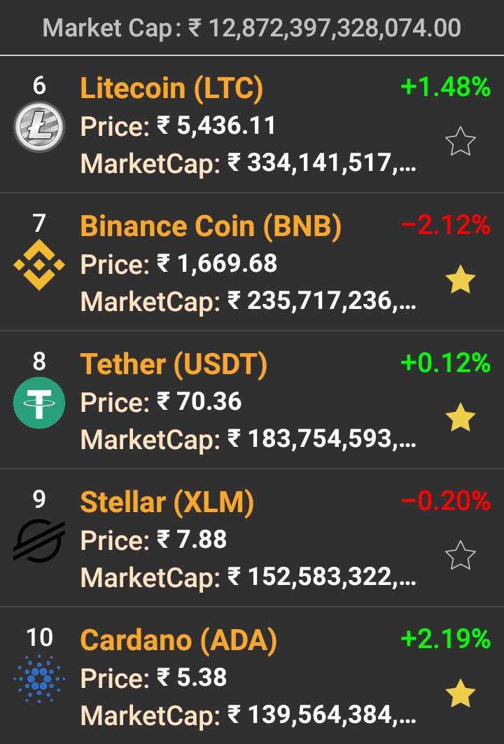 CoinMarketApp के अनुसार मुख्य कोइंस के भाव कुछ इस प्रकार रहे।