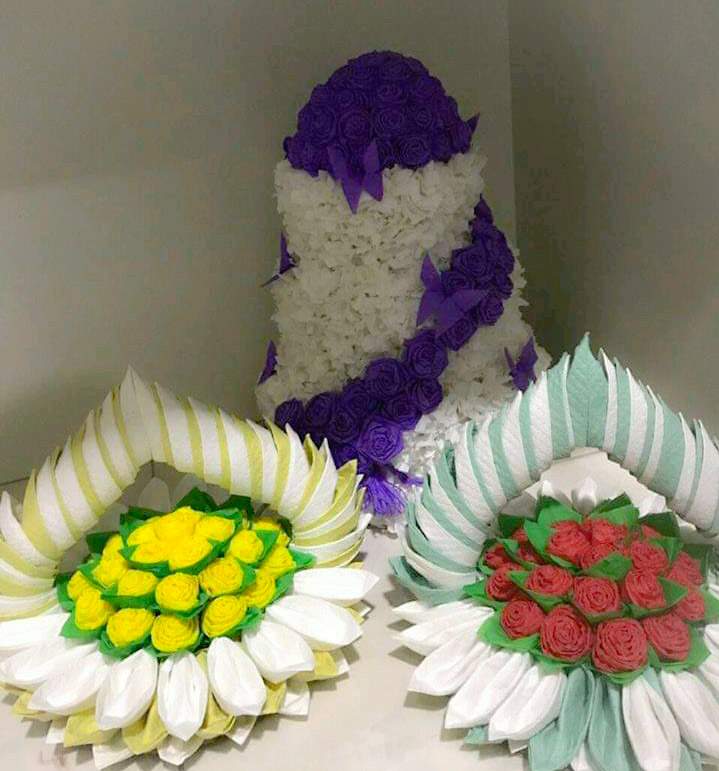 Seni dari kertas tisu biasa dibuat oleh para gadis saat acara Pesta perkawinan, rangkaian seni ini dibuat untuk ditempatkan di meja makan yang disediakan nantinya.