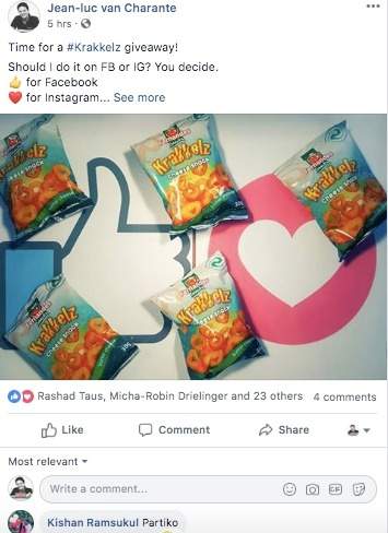 Today I started a Krakkelz (a local cheese snack) giveaway on Instagram and Facebook, and one of my friends (@kishan.ramsukul, yes calling you out for this one) responded to also do the giveaway on Partiko.