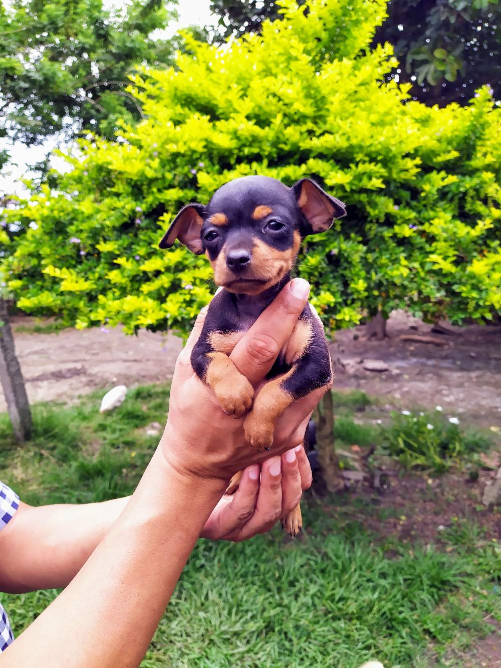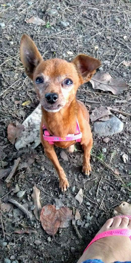 Fernando el esposo de Nelly (es ella quien me dice que soy el padre que nunca tuvo), me contó que terminando su trabajo, vió entre los matorrales algo que se movía, se preparó pensando que podía ser una serpiente, pero tremenda sorpresa se llevó, cuando vió que lo que salió fue un perrito Chihuahua.