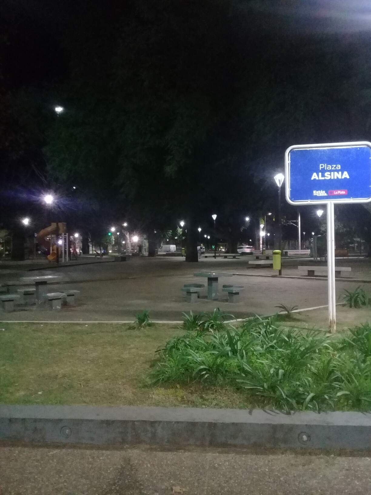 Una plaza junto a las vías del tren.