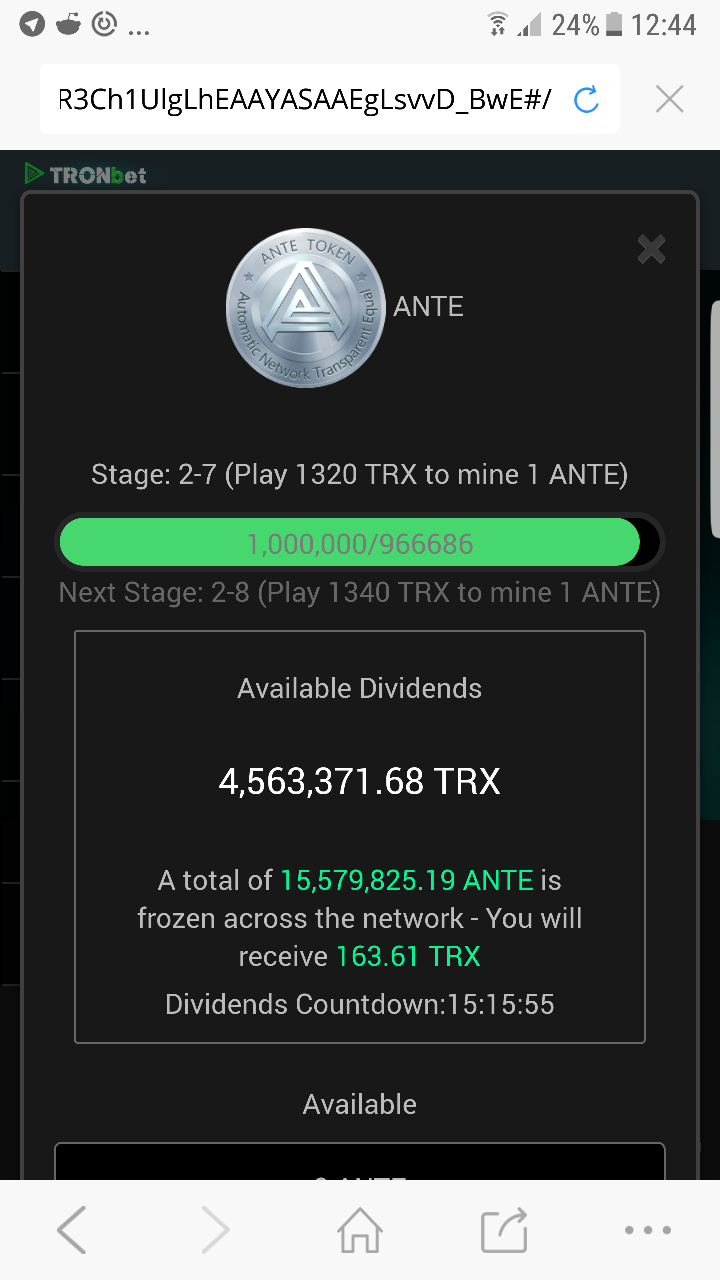 So after spending 20,000trx on tronbet.io/?reff=TRXCKNY#, U NOW HAVE 571 ante frozen... Here is a screen shot of my user interface I will be posting the daily pay outs so stay tuned