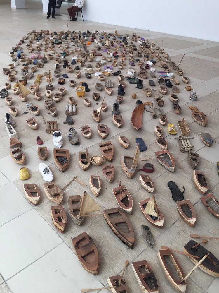 Om de vluchtelingen te eren hebben ze in het museum voor moderne kunst in Havana, een sloep gevormd met schoenen en slippers.